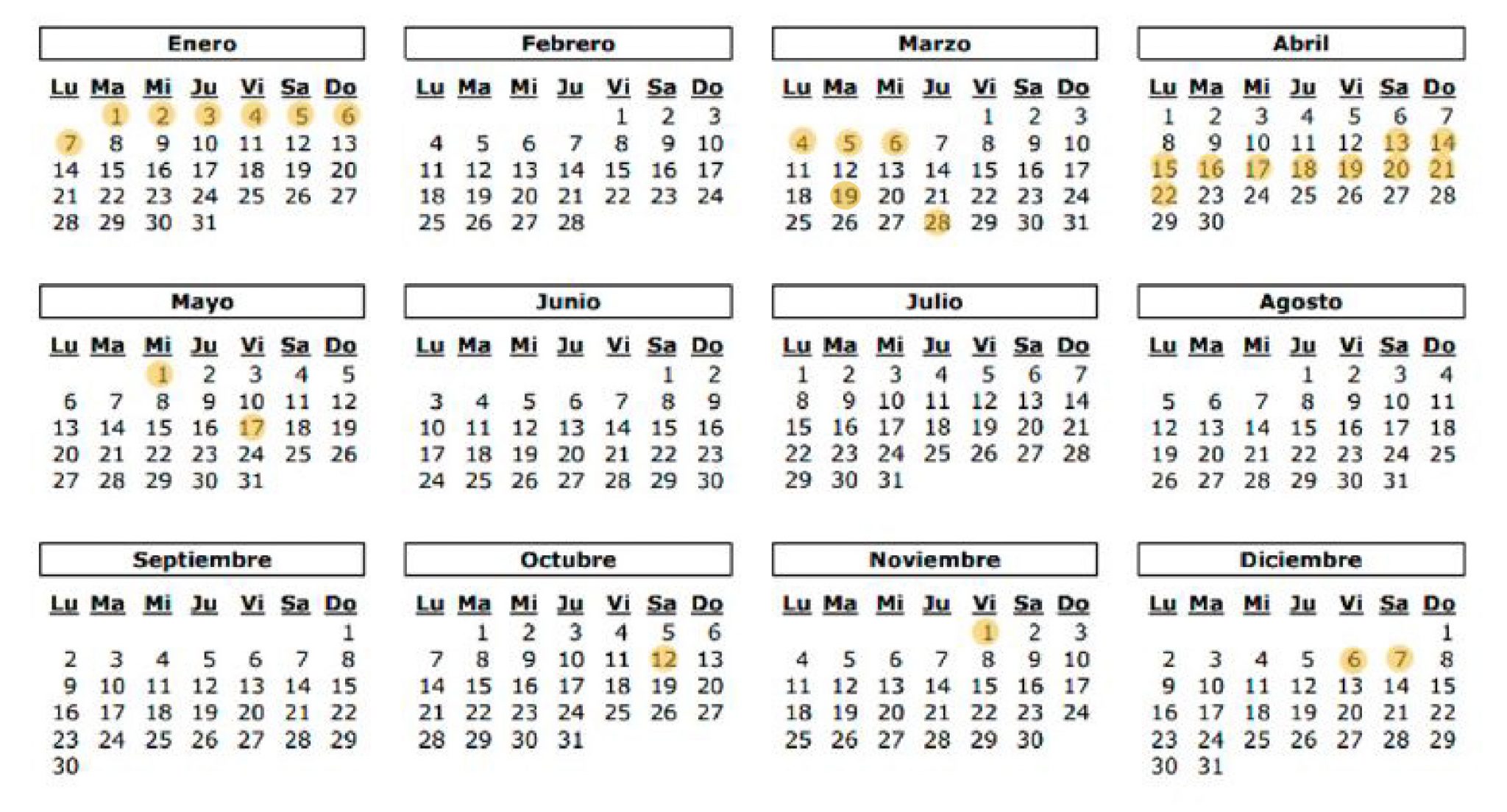 Días no lectivos: